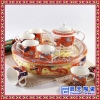 瓷器茶具泡茶的好处:因为瓷器茶具导热较慢、保暖适中,与茶不会发生化学反响,沏茶能获致较好的色、香、味,并且这类茶具造型好看、质感浩博、扮饰洒脱,极具欣赏价值。经专家研究发现,玻璃和塑料制品所含的有害物质对人体的伤害很严重。只有经过1300多度高温的陶瓷茶具对人体是完全无害的,所以我们采用景德镇传统工艺生产的陶瓷茶具,满足了人们对健康和品味同步的需求。