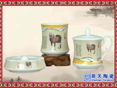 景德镇辰天陶瓷有限公司供应定做陶瓷办公三件套。陶瓷办公三件套包括陶瓷茶杯、陶瓷笔筒、陶瓷烟灰缸。陶瓷办公三件套适合用于商务往来礼品,公司企业单位福利礼品的馈赠,非常有纪念收藏价值。我厂生产的陶瓷办公三件套采用高优质级骨质瓷,骨瓷色泽呈乳白色,光泽柔和,温润如玉。