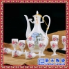 瓷酒具的装饰在瓷酒瓶上体现的最为直接和广泛。陶瓷艺术酒瓶,不仅是酒的载体,也是中国酒文化的一个重要组成部分,酒瓶作为酒文化的重要见证,它集绘画、书法、风情典故、陶艺、酒艺等融于一体,综合体现了酒文化的灿烂辉煌和人类的文明史,它是无声的、立体的画、凝固的音乐、合情的雕塑。瓷酒瓶有的晶莹洁白,光亮照人;有的质地细腻,釉彩生光;有的玲珑剔透,精致小巧;有的幽靓雅致,古朴优美;有的形状奇特,古色古香。真可谓是精彩纷呈,让人目不暇接。这些酒瓶,从质地上看,有陶器、瓷器、紫砂,在装饰风格上,有釉上粉彩、釉下青花、三彩,开片及各种彩釉装饰手法等。用色彩装饰瓷器起源于晋代,首创于北方,后陆续传到景德镇等南方窑场。宋代,吉州窑的釉下彩花瓷很有名气,磁州窑又首创了用毛笔蘸彩料,在烧好的瓷器釉面上绘制花纹,再加以彩烧。到了明代,更是出现了色彩缤纷,百花争艳的局面。酒瓶上的各种图画,有名家书法,有历代大诗人赞酒的诗篇。再看那太白醉酒、麻姑献寿、空城计、武松打虎、酒中八仙,个个神态逼真,栩栩如生;而那一幅幅山水花鸟,有的泼墨写意,有的细描精绘,件件如出名家之手,美不胜收。当我们置身于这些作品前,总感觉到有团团的彩色火焰喷出,那热烈奔放的色调,任性地泼洒在瓶壁上,浅淡深浓,凝固成一片撩人的放纵和神秘。